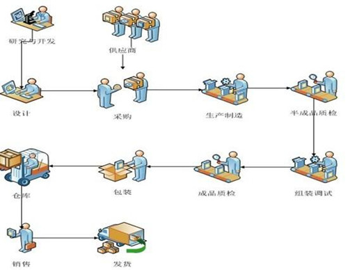 下圖為“高低溫實驗箱”生產(chǎn)工藝流程,從生產(chǎn)計劃——組織材料——實施生產(chǎn),然后是半成品——質(zhì)檢驗收——組織總裝,最后是成品驗收數(shù)量——包裝裝箱——試驗箱出倉。