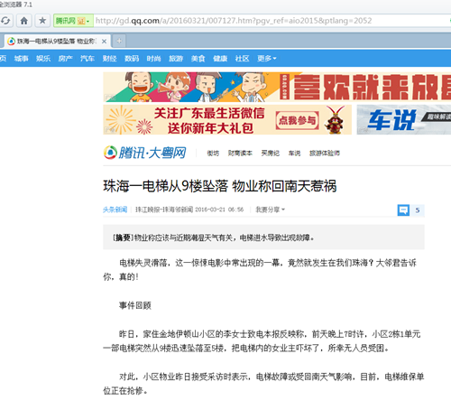 珠海一電梯從9樓墜落是回南天惹的禍?愛佩恒溫恒濕箱能為你解決