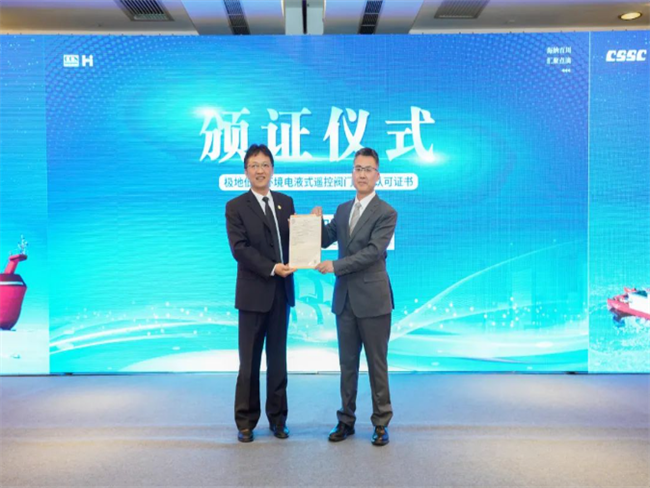 在與會專家的共同見證下,中國船舶集團(tuán)第七〇八研究所所長盧霖和中國船級社趙晏副總裁共同完成了愛佩科技生產(chǎn)的“遠(yuǎn)東防寒實(shí)驗(yàn)室”聯(lián)合揭牌儀式,并由中國船級社江蘇分社副總經(jīng)理杭仲九向上海海迅機(jī)電工程有限公司總經(jīng)理方雄偉頒發(fā)了第一個(gè)經(jīng)“遠(yuǎn)東防寒實(shí)驗(yàn)室”試驗(yàn)驗(yàn)證的AIP 防寒證書。“遠(yuǎn)東防寒實(shí)驗(yàn)室”是依托極地相關(guān)研究專項(xiàng)建設(shè)、國內(nèi)首個(gè)可模擬低至-70℃極地環(huán)境的試驗(yàn)系統(tǒng),為國內(nèi)在裝備極地環(huán)境適應(yīng)性、低溫性能試驗(yàn)驗(yàn)證、防寒設(shè)計(jì)等關(guān)鍵技術(shù)的突破和產(chǎn)業(yè)應(yīng)用提供了重要試驗(yàn)條件支撐。與此同時(shí),第七〇八研究所依托“雪龍2”南北極科考航次,聯(lián)合國內(nèi)各方研究力量,將進(jìn)一步結(jié)合極地原位采樣、原型測量等工作持續(xù)提升在極地海冰、低溫等多要素環(huán)境對裝備影響機(jī)理的研究水平。
