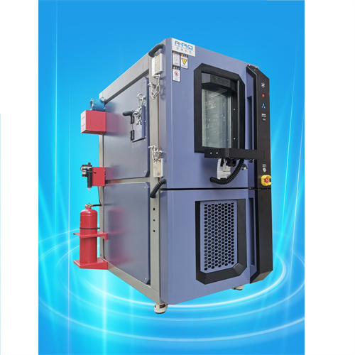 • 電池安全測試防爆高低溫試驗箱防爆原理:利用水基滅火器及噴淋水進行雙重滅火,內箱泄壓孔泄壓輔助達到防爆目的,若樣品在設備內箱測試過程中發生爆裂,產生的煙霧第一時間會啟動防爆系統,經由內部抽氣泵排入裝煙感器的罩子內,感應后即觸發水基滅火器開關,對內箱進行滅火,緊接著噴淋裝置噴水再進行二次滅火。當內箱氣壓過大時,泄壓孔會被沖開,即完成泄壓工作。