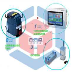 ①制冷機采用法國原裝“泰康”全封閉壓縮機。